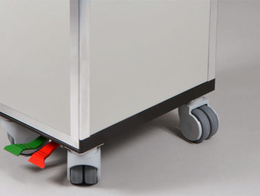 The trolley base, shelf and lid were created by Ogle using SLS to the clients CAD; and the supplied wheels, braking mechanism, and fixings were used to secure the base of the trolley. The part was modified before painting to increase rigidity to enable the foot brake to be applied successfully.