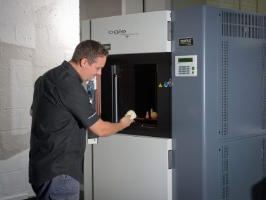 If you just need a quick 3D printed piece as part of a design project that is likely to have multiple iterations, then the finishing is not particularly important. If the part in question is the final design concept which will now be exhibited or displayed, then the way the part is finished before reaching the paint department is vital. At Ogle, we installed two EVP250 vibratory bowls to automate and speed the finishing of plastic parts made by SLS. Benefits of this process include delivering a satin-like finish, but parts also become more flexible as the plastic absorbs water from the bowl which replaces the material’s nature moisture lost during the laser sintering at 175 to 180°C.